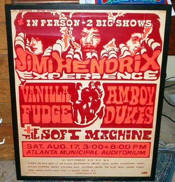 This is a cardboard concert poster for The Jimi Hendrix Experience at the Atlanta Municipal Auditorium August 17, 1968 - If you have this poster, please contact me; will pay top dollar, plus.